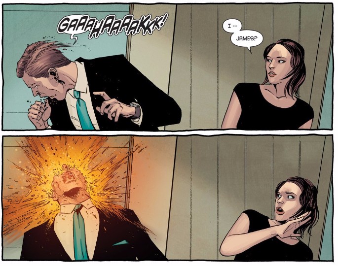 And the CDC lady from the first issue is in his pocket. Deep in his pocket. Not only are they well aware of what’s going on in the US, they’re planning to profit from it because that’s what asshole villains do. The only thing standing in their way is how many people are dying and how this newscaster guy died in the public view.