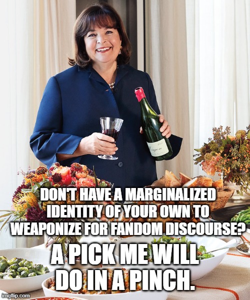 They Tag In Other Marginalized People – I have talked to death about how annoyed I am at how entitled PickMe POC are not just to my time specifically but to their “right” to be the only people of color in fandom who can talk about racism.