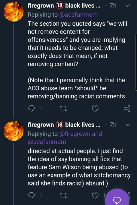 Actually this person is really arguing that there can be nothing racist about people gleefully writing fic Black people being abused in a world where it is clear that many non-black people on some level feel fixation with the sight of violence done to Black people.