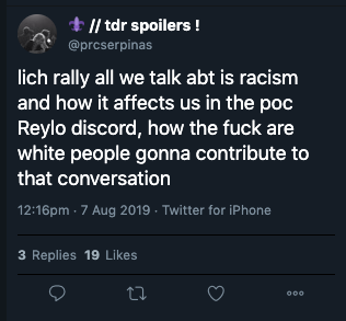 At the same time that people of color are expected to control our own fandom experiences and somehow avoid racism in what is an increasingly racist space, no one else is expected to do this?