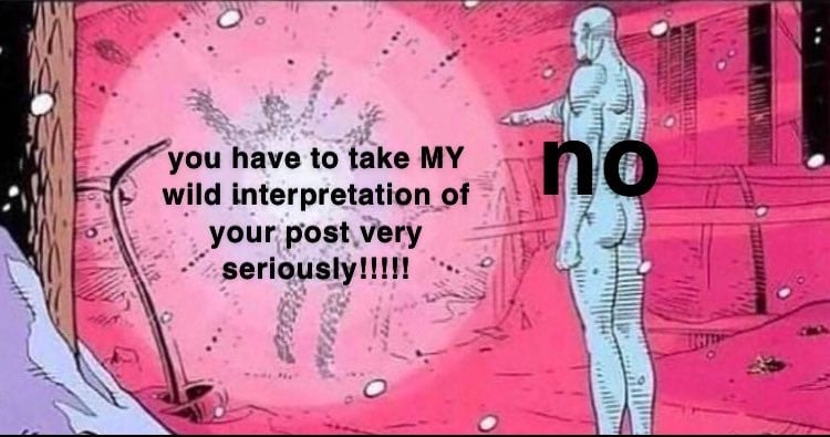 I’m “cheating” this month by using a meme I didn’t create! I can’t remember who the OP is, but if you know or are that person, thanks for that, link me to the original and I’ll boost it because it rocks. One of my friends tagged me in this meme, which uses Dr. Manhattan blasting someone into stardust from Watchmen and it’s perfect because this is… my experience.